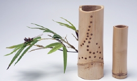 1.風景、すずむし 亀宗竹草花用花器 全体を一つの風景とした